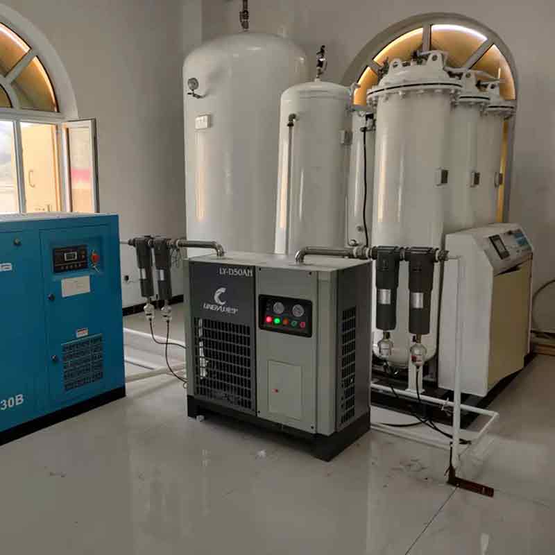 1、高效制氧:采用變壓吸附(PSA)技術(shù),通過(guò)裝有沸石分子篩的吸附塔,在加壓時(shí)將空氣中的氮?dú)馕?,剩余未被吸附的氧氣被收集起?lái),經(jīng)過(guò)凈化處理后成為高純度的醫(yī)用氧氣。
